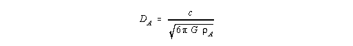ist der heutige Grenzabstand DA von der aktuellen Materiedichte rA abhängig, die sich auf Grund der Expansion natürlich mit der Zeit verkleinert. Da der heutige Hubble-Parameter entsprechend der Gleichung (I,22)